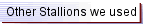 These are other stallions that we have used purchased breedings or have tried to use in our breeding program. Some of the breedings may have not been successful and some may still be waiting to be used. Any of the breedings that we have left can be used in the mare lease program to create a special foal. These stud fees will be underlined. |